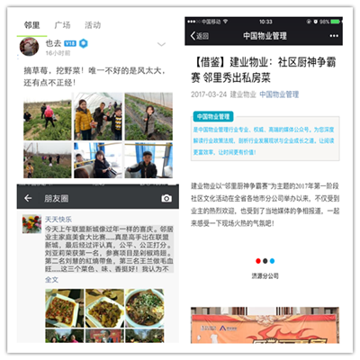 濟(jì)源、三門峽等分公司與當(dāng)?shù)胤抗芫?、電臺(tái)、晨報(bào)、項(xiàng)目公司緊密配合,舉辦大型廚神爭(zhēng)霸賽、元旦喜樂(lè)會(huì)等活動(dòng),吸引了中國(guó)物協(xié)等社會(huì)媒體的廣泛關(guān)注,并取得了良好效果。漯河、平頂山、洛陽(yáng)等分公司充分利用建業(yè)一家APP、微信、直播平臺(tái)等載體,實(shí)現(xiàn)線上線下的充分互動(dòng),更是贏得了業(yè)主的一致好評(píng)。插花、葫蘆絲、樂(lè)器、乒乓球、書法協(xié)會(huì)等社群組織的持續(xù)運(yùn)營(yíng)和活躍,倡導(dǎo)并引領(lǐng)了業(yè)主的新型生活理念。