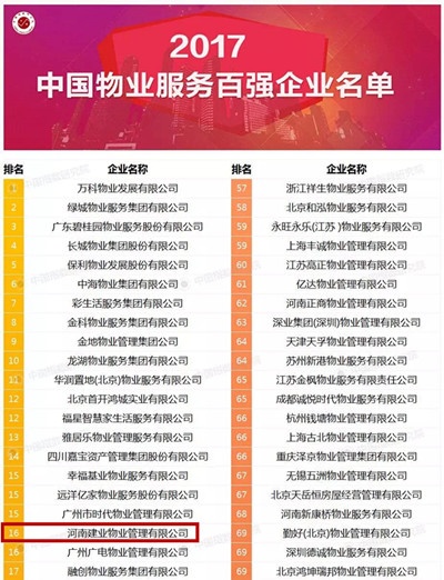繼去年躍居中國物業(yè)管理綜合實力第16位之后,建業(yè)物業(yè)2017年再度喜獲16強殊榮。