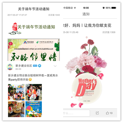 漯河、鄭州、洛陽(yáng)等分公司將親子運(yùn)動(dòng)會(huì)、鄰里旅行、消夏音樂(lè)節(jié)、藝術(shù)團(tuán)義演等活動(dòng)引入社區(qū),倡導(dǎo)業(yè)主以全新理念暢享新型生活方式,感受鄰里共處的曼妙時(shí)光,體驗(yàn)建業(yè)物業(yè)獨(dú)具特色的社區(qū)文化。新鄉(xiāng)、焦作等分公司充分利用建業(yè)一家APP、微信等載體,實(shí)現(xiàn)線(xiàn)上線(xiàn)下的充分互動(dòng),更是贏得了業(yè)主的一致好評(píng),極大的提高了業(yè)主參與度和滿(mǎn)意度。而書(shū)法、讀書(shū)會(huì)、籃球、太極等等社群組織的組建、運(yùn)營(yíng)和活躍,亦是本階段的重要成果。