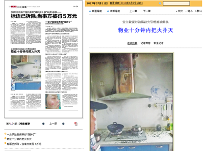 2017年7月6日,洛陽·建業(yè)森林半島一戶居民因操作不當(dāng)引起家中抽油煙機著火,物業(yè)人員從接到消防主機煙感報警、確認(rèn)火情、啟動應(yīng)急預(yù)案、到最終撲滅起火點,用時不到10分鐘,避免了一場可能威脅到廣大業(yè)主生命和財產(chǎn)安全的災(zāi)難。消防主管部門對建業(yè)物業(yè)應(yīng)對此類突發(fā)事件的處置過程及時、得當(dāng)給予了高度贊揚。