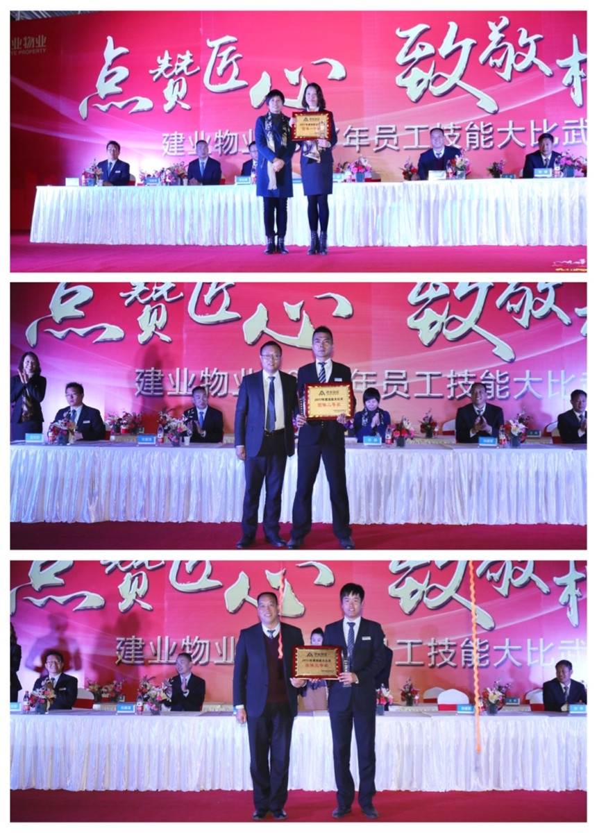 10月29日,2017年建業(yè)物業(yè)“點贊匠心、致敬楷模”技能大比武活動在鄭州城市花園外國語中學隆重舉行。本次活動旨在提升員工專業(yè)技能水平,提高團隊凝聚力,展現(xiàn)物業(yè)服務品質提升成果?;顒赢斕?,建業(yè)集團董事長胡葆森先生、建業(yè)新生活副總裁張立華先生、建業(yè)新生活副總裁蔡斌先生、建業(yè)新生活副總裁周建慧女士、鄭州市物業(yè)管理協(xié)會秘書長田秀生先生、建業(yè)物業(yè)總經(jīng)理許靜女士蒞臨本次大比武現(xiàn)場。
