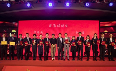 建業(yè)物業(yè)總經(jīng)理許靜、嵩云科技總經(jīng)理蔡斌為獲獎(jiǎng)?wù)哳C發(fā)“藍(lán)海創(chuàng)新獎(jiǎng)”