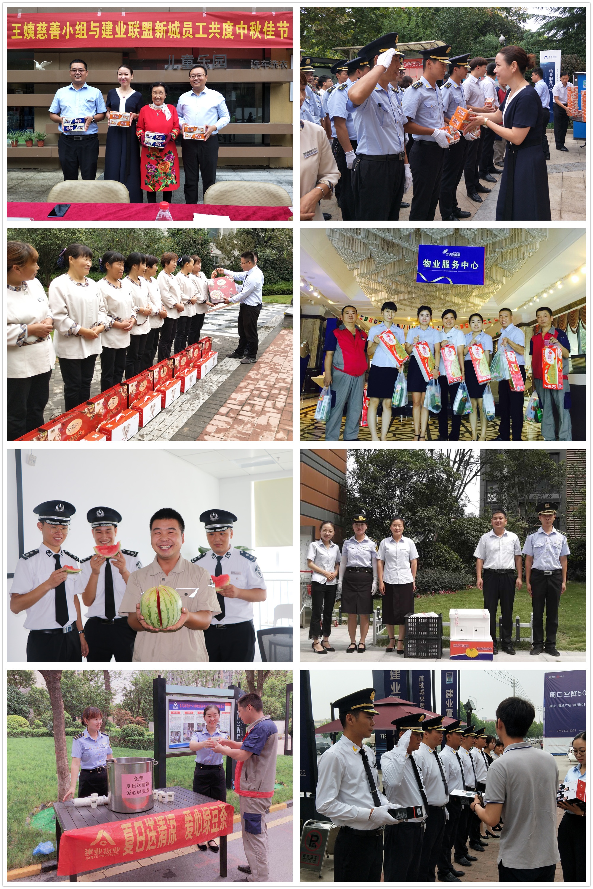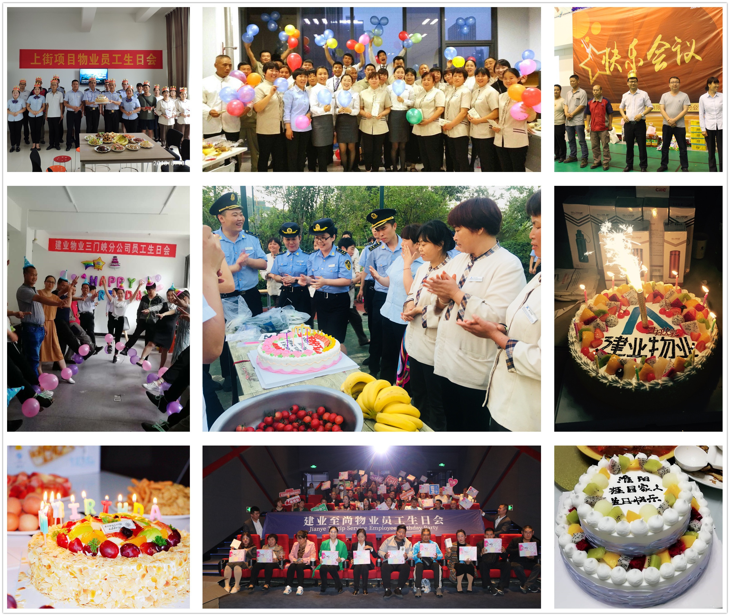 同時要像對待家人一樣對待員工,關(guān)懷員工。建業(yè)物業(yè)將對員工的關(guān)懷做到無微不至:崗?fù)]空調(diào)?裝!沒有休息室?配!員工生日?辦慶生會!員工工作壓力大?一起團(tuán)建旅游!做了好人好事?立兌獎勵!截至目前,全省今年已開展生日會457場,開展夏送清涼、團(tuán)建等活動2197次。