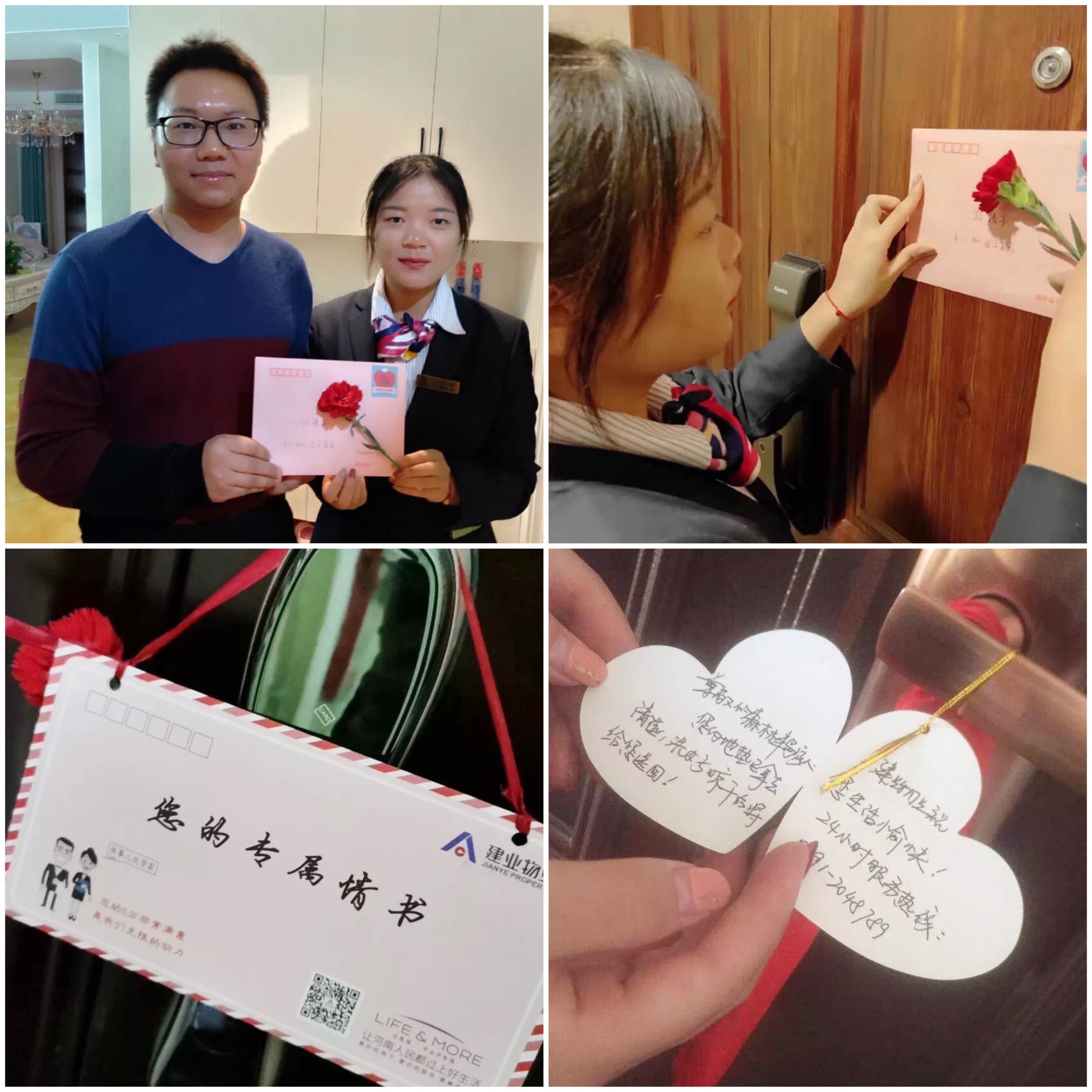 建業(yè)物業(yè)注重提升業(yè)主生活中的儀式感。即使是平凡的日子里,工作人員也會(huì)為業(yè)主送去一封簡(jiǎn)單卻飽含深情的“情書”,道上幾聲樸素的問(wèn)候,不僅點(diǎn)綴了業(yè)主的生活,更令業(yè)主驚喜又感動(dòng)。他們紛紛表示,住在建業(yè),感受到的幸福不是一刻,而是時(shí)時(shí)刻刻。