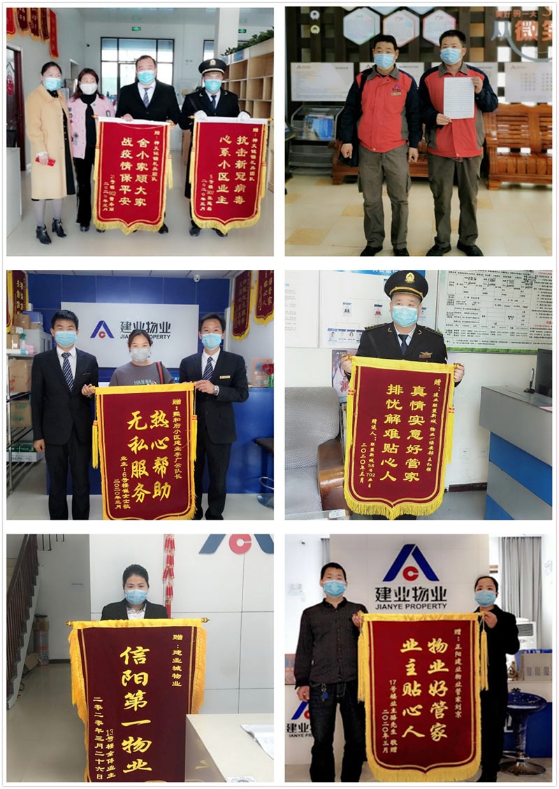 疫情發(fā)生以來,建業(yè)物業(yè)共收到錦旗168面、感謝信289封、來電致謝374起,業(yè)主群、朋友圈點贊60000余次。這些,都將化作力量,激勵著建業(yè)物業(yè)人繼續(xù)一往無前!