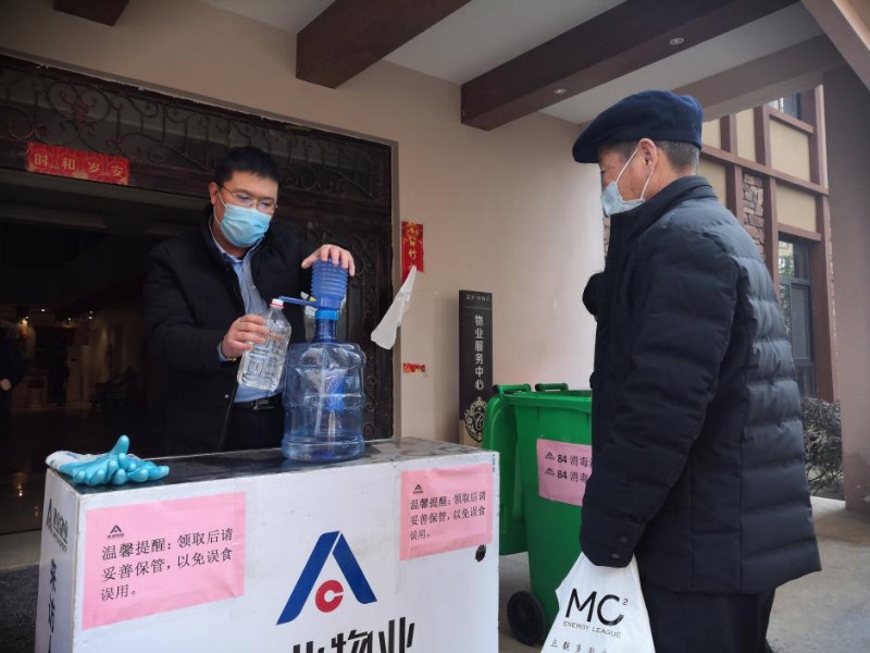 建業(yè)物業(yè)為業(yè)主發(fā)放免費消毒水