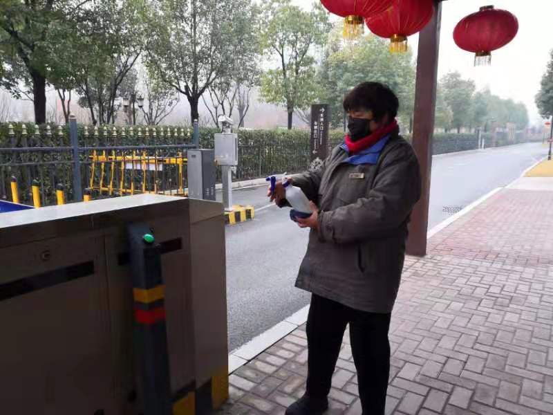 王新知每日背著沉重的消毒噴霧箱把園區(qū)的每個(gè)角落都消殺干凈;采買防護(hù)物資分發(fā)給業(yè)主;保證每個(gè)同事在作業(yè)的時(shí)候都做好自我保護(hù);安撫同事情緒……