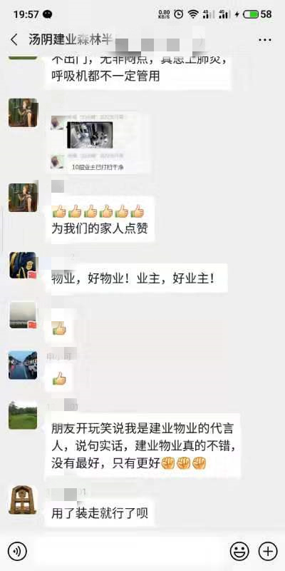 看著朋友圈、業(yè)主群的點贊以及業(yè)主當(dāng)面的表揚與叮囑,奮斗在一線的建業(yè)物業(yè)人倍感溫暖,也更加充滿力量了。