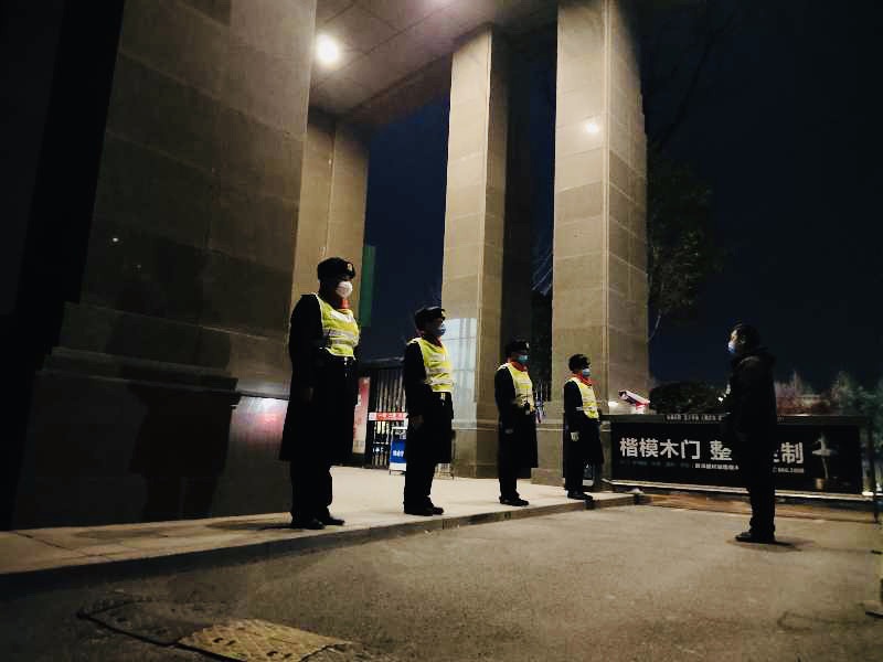 昏黃的燈光,寂靜的夜晚,雖然無(wú)人注視,但建業(yè)物業(yè)禮兵團(tuán)隊(duì)依然隊(duì)列整齊、嚴(yán)陣以待。