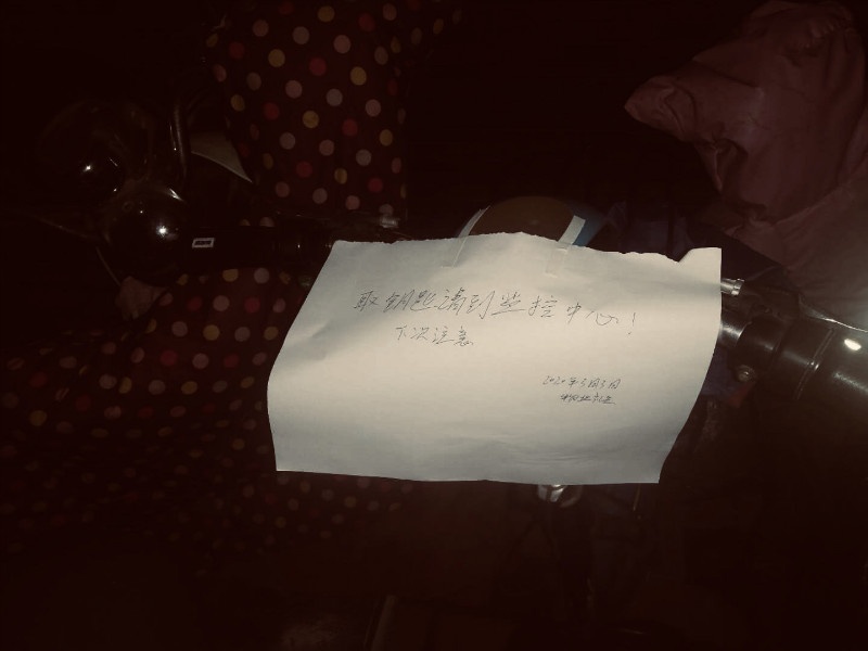 信陽(yáng)建業(yè)森林半島禮兵中隊(duì)長(zhǎng)王松夜晚巡邏時(shí)發(fā)現(xiàn)一輛電動(dòng)車(chē)的鑰匙忘記拔了,他便替業(yè)主收起鑰匙,并留下字條,然后又繼續(xù)進(jìn)行日常的巡邏。