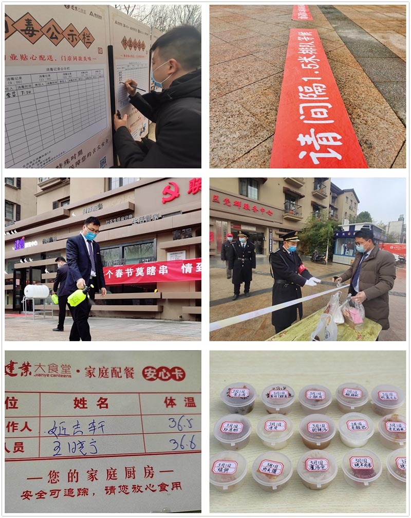 從菜品設(shè)計(jì)到衛(wèi)生保障、再到安全配送,每一個(gè)環(huán)節(jié)都經(jīng)過(guò)深思熟慮、嚴(yán)格把關(guān),打造制作流程嚴(yán)格管控,制作及配送人員健康公示、車(chē)輛及場(chǎng)地每天5次全面消毒、取餐1.5米間隔線(xiàn)、配送人員一單一消毒、隨餐放置安心卡、每日每餐食品留樣監(jiān)測(cè)的“五大安全保障”,全方位守護(hù)業(yè)主的舌尖幸福。