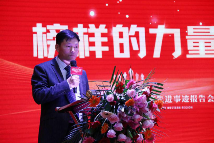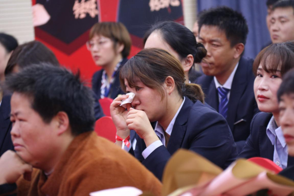 優(yōu)秀員工代表講述著自身事跡,帶領(lǐng)大家回顧這一年的艱辛與付出,字字懇切,說到動(dòng)情之處,淚灑舞臺。數(shù)名員工家屬受邀來到現(xiàn)場,用一束鮮花、一句問候、一個(gè)擁抱,勾起臺下參會(huì)人員的思緒,現(xiàn)場掌聲雷動(dòng),大家備受鼓舞。會(huì)議最后,參會(huì)領(lǐng)導(dǎo)上臺為西部大區(qū)本次評選的16位榜樣代表授牌頒獎(jiǎng),號召全體員工向榜樣致敬。