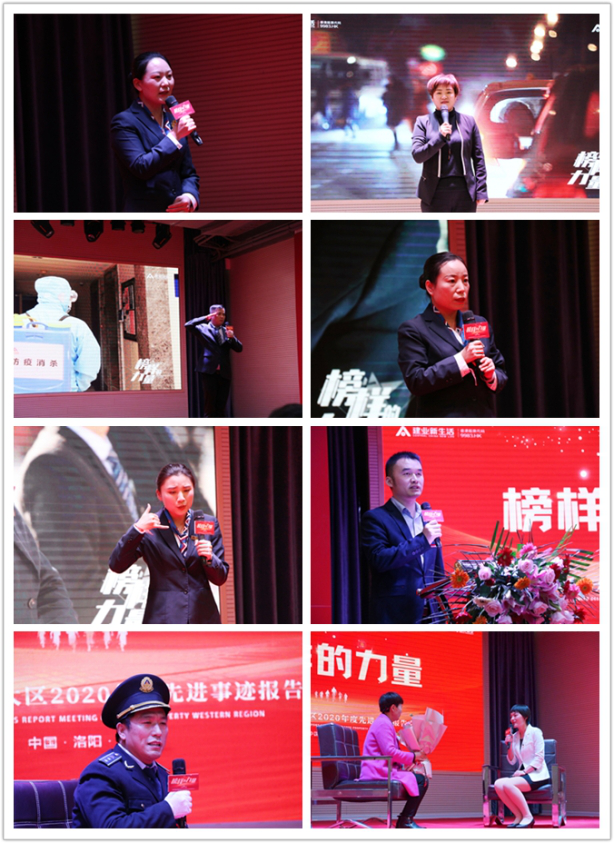 報(bào)告會(huì)上,七位優(yōu)秀員工代表的發(fā)言感動(dòng)人心、催人淚下。龍城片區(qū)管家主管姬麗麗用自身經(jīng)歷詮釋“堅(jiān)持”二字,疫情期間她不顧危險(xiǎn),走上街頭為業(yè)主采買救命藥;為了一份責(zé)任,洛陽市場發(fā)展部經(jīng)理付朝娟奔波在凌晨一點(diǎn)、清晨六點(diǎn)的高速路上,帶領(lǐng)著團(tuán)隊(duì)用汗水和淚水繪制服務(wù)藍(lán)圖;洛陽·世紀(jì)華陽貼心管家李曉敏甘冒風(fēng)險(xiǎn),始終守護(hù)業(yè)主安全,用一顆真心、一片真情換來業(yè)主滿意,連續(xù)三年收費(fèi)率100%;洛陽·高爾夫花園貼心管家王閃閃,在日常服務(wù)中不斷傾注真情,用專業(yè)感動(dòng)業(yè)主,用真心贏得尊重;洛陽·鼎城門崗禮兵王四干在疫情期間主動(dòng)請纓,用善意的謊言隱瞞家人,毅然決然奔赴抗疫一線;洛陽·高爾夫花園禮兵中隊(duì)長王利萌在面對小區(qū)輸入型確診病例時(shí),用一句“我是隊(duì)長,我上!”的豪言擔(dān)起消殺重任;盡管愛人癱瘓?jiān)诖?,但為了靈寶森林半島全體業(yè)主安全,保潔員杜便魚義無反顧擔(dān)起園區(qū)重任,一句“咋不怕?我也怕,但是為了業(yè)主,我要干”,是她最樸實(shí)無華的表達(dá)。
