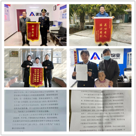 11月,建業(yè)物業(yè)在管園區(qū)內(nèi)涌現(xiàn)好人好事共620件,其中收到錦旗124面、感謝信103封、其他致電表揚等393次。