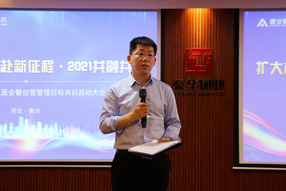 緊接著,泰華錦業(yè)生活常務(wù)副總經(jīng)理李亮亮圍繞泰華錦業(yè)生活2021年度重點(diǎn)工作計(jì)劃進(jìn)行匯報(bào)。匯報(bào)中,李總明確了泰華錦業(yè)生活未來三年發(fā)展的核心業(yè)績指標(biāo),提出“穩(wěn)定主營收入、縱深推進(jìn)增值服務(wù)”的經(jīng)營策略,“西進(jìn)北上奔赴京津冀、擴(kuò)大根據(jù)地”的市場發(fā)展戰(zhàn)略,同時(shí)圍繞聚焦融合、凝聚團(tuán)隊(duì)、降本提質(zhì)增效,案場煥新行動(dòng)、新長征100人才戰(zhàn)略、創(chuàng)新發(fā)展、對標(biāo)學(xué)習(xí)、建業(yè)大服務(wù)體系體驗(yàn)、行業(yè)課題研究以及紅色物業(yè)城市運(yùn)營商等內(nèi)容進(jìn)行匯報(bào)。