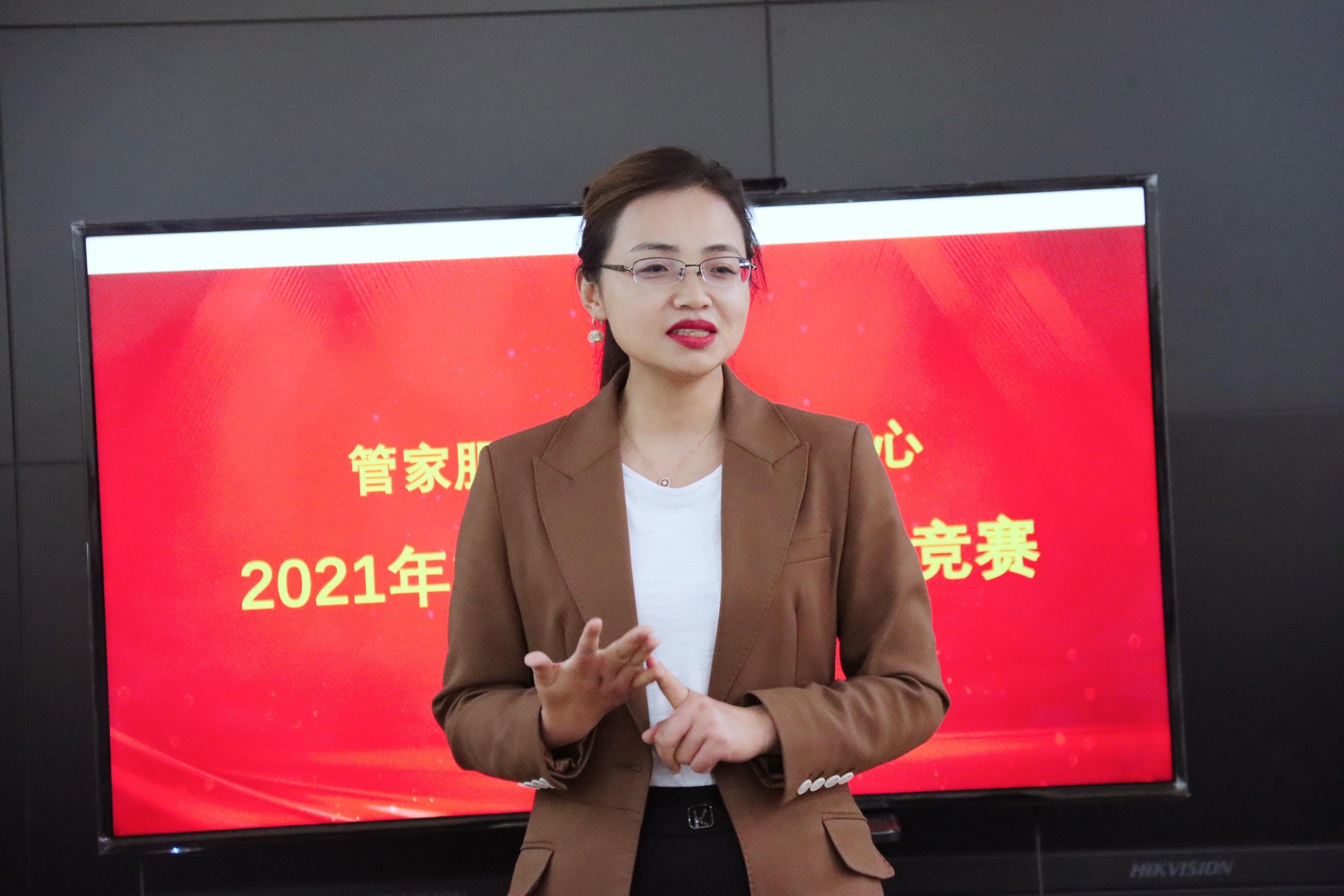 業(yè)務(wù)知識(shí)競(jìng)賽開(kāi)場(chǎng)前,由建業(yè)物業(yè)助理總經(jīng)理、管家服務(wù)部總經(jīng)理張藝作開(kāi)場(chǎng)致辭和賽前激勵(lì)。她對(duì)全體參賽人員積極學(xué)習(xí)、手不釋卷的備賽態(tài)度給予充分肯定,并希望全員持續(xù)保持濃厚的學(xué)習(xí)氛圍,夯實(shí)業(yè)務(wù)知識(shí)基礎(chǔ),提升服務(wù)質(zhì)量和服務(wù)效能,為贏得客戶口碑和品牌傳播而不懈努力。