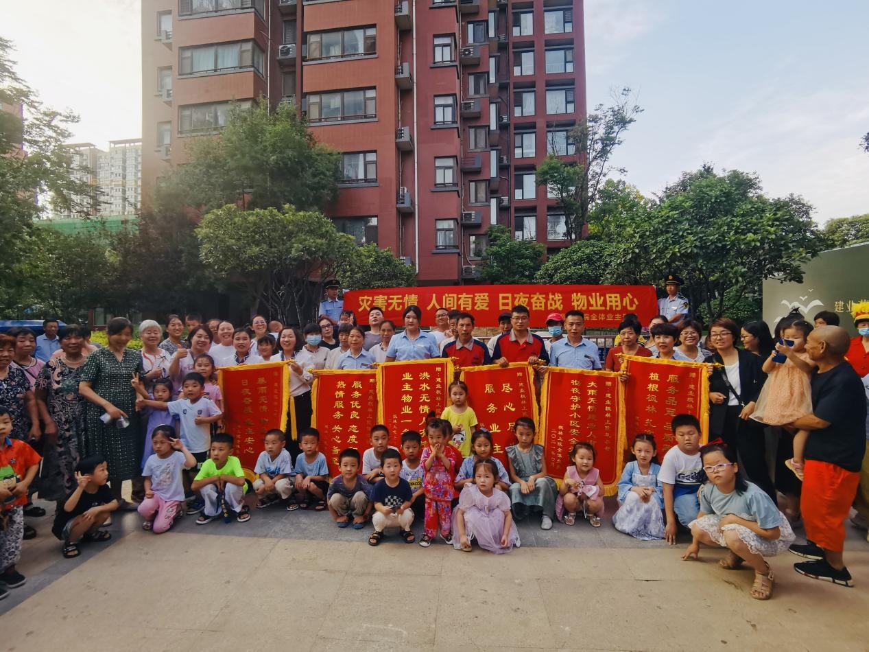 7月27日18:30,鄭州·建業(yè)楓林上院近300戶業(yè)主帶著一支鑼鼓隊(duì)齊聚小區(qū)廣場(chǎng),為楓林上院全體物業(yè)人送上六面錦旗,以及一張寫滿真摯感言的感謝信,以表達(dá)對(duì)物業(yè)防汛工作及暖心服務(wù)的高度認(rèn)可和滿心感謝。