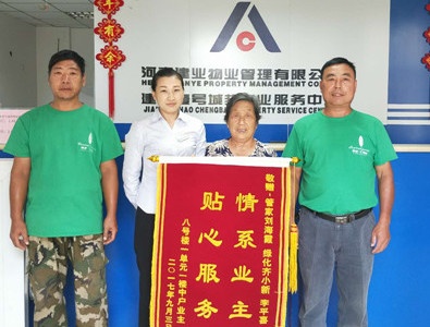 暮秋9月,秋風(fēng)送爽,平凡的物業(yè)人,在自己的崗位上至真至誠(chéng)地服務(wù)著每一位業(yè)主。在建業(yè)物業(yè)所服務(wù)的社區(qū)里,涌現(xiàn)出一件件感人至深的好人好事,溫暖著社區(qū)的每一位業(yè)主9月,我們收到拾金不昧、助人為樂(lè)、技術(shù)高超、心系業(yè)主、服務(wù)熱情等好人好事54例,其中,錦旗21面、感謝信14封、致電致謝18例。 鏡頭一: 9月2日下午6點(diǎn)左右,濟(jì)源·壹號(hào)城邦保潔張素玲打掃衛(wèi)生間時(shí),在拐角處撿到一只錢包,錢包內(nèi)有身份證、駕駛證、教師證重要證件,并有現(xiàn)金若干。她毫不猶豫地上交錢包,并在管家和維修工的協(xié)助下,通過(guò)證件找到失主,將錢包歸還,還婉言謝絕了業(yè)主的現(xiàn)金酬謝。 第二天,閆先生拿著一面錦旗來(lái)到物業(yè)辦公室,以此感謝張素玲保潔員拾金不昧的行為,對(duì)建業(yè)物業(yè)表達(dá)認(rèn)可! 鏡頭二: 9月2日