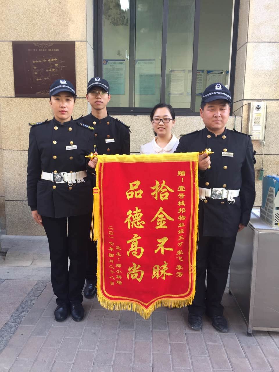 ——建業(yè)物業(yè)2017年5月份好人好事通稿 五月,天氣炎熱,建業(yè)物業(yè)全體員工不僅持續(xù)為業(yè)主打造舒適的人居環(huán)境,還積極主動為業(yè)主提供幫助,此間涌現(xiàn)了一件件感人至深的好人好事。5月,我們收到拾金不昧、技術高超、服務熱情、智勇擒賊、助人為樂等多種類型的好人好事75例,其中錦旗21例,感謝信17例,電話表揚37例。 鏡頭一: 4月29日凌晨3:00,“轟”的一聲巨響引起開封·建業(yè)熙和府禮兵李永斌、朱峰、王飛等人的高度重視,見一輛大貨車撞向小區(qū)對面干部修養(yǎng)所的墻后迅速逃離現(xiàn)場。禮兵李永斌見勢,二話沒說騎著電動車就追了上去,朱峰等人立刻聯(lián)系干休所相關負責人。禮兵雖然沒有追上該車,但把車牌號牢牢記下。通過警方的調查,最終確定嫌疑人身份,減少了干休所的損失。為此干休所特派代